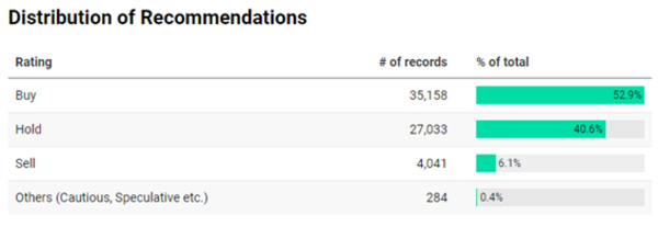 Analysis: There were a total of 66,516 recommendations made by analysts over the last 10 years for S&P500 companies.