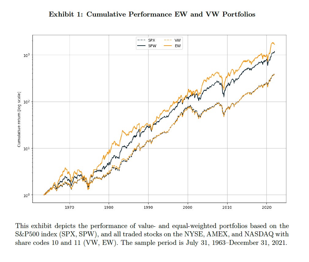 Based on existing research5, equal-weighted portfolios have consistently outperformed their value-weighted counterpart. The key reason for the outperformance as found by the authors was that by design, the equal-weighted portfolio overweight into small-cap companies (thereby activating the size premium).