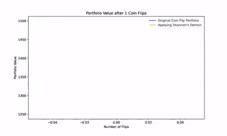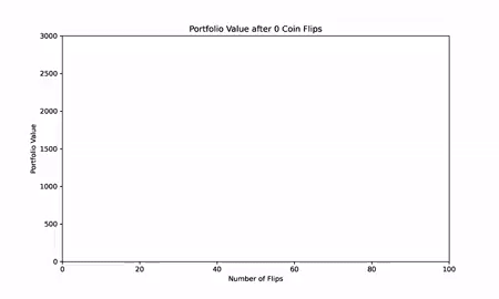 At first glance, there is no way to win long-term from this game if we are using a fair coin. We will just broadly oscillate around the original portfolio. But, we can completely change the outcome by making a simple change.
