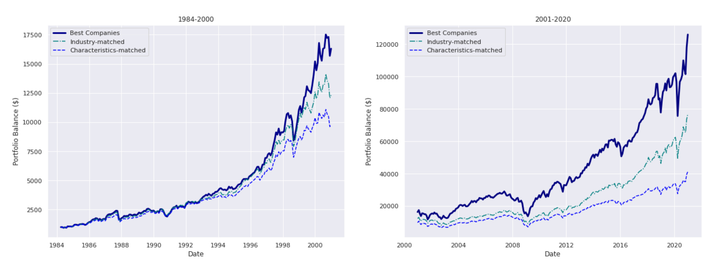 To test this, researchers collected companies that featured in the best companies to work for list going back to 1984 and then created an equal-weight portfolio that gets updated and rebalanced every year.