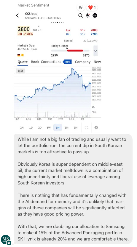 As discussed at the start, we already have significant positions in SK Hynix, Samsung, and Micron as part of our Advanced Packaging portfolio (Opened on Jan 30th).