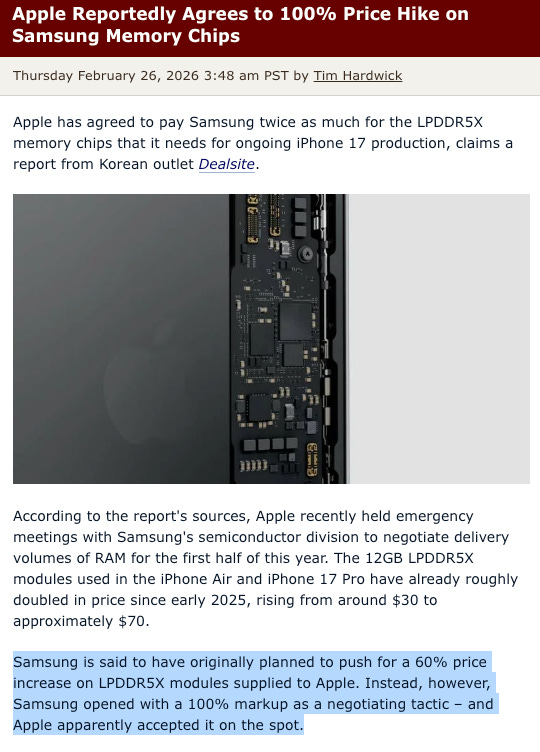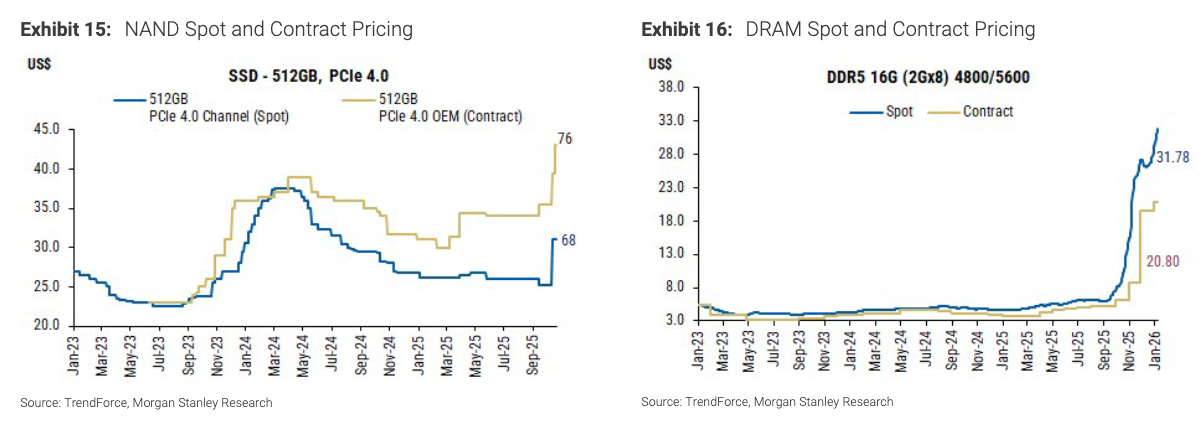 Accelerating YoY pricing: Pricing for DRAM and NAND is expected to rise into Q2 2026, with potential for a 20% hike in Q3, which shows us that the pricing cycle has not peaked.