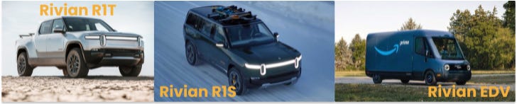 Rivian’s product line is very straightforward as of now. They have two products (R1T and R1S) that are aimed at the general public and they are also in a partnership with Amazon to create custom delivery vehicles.