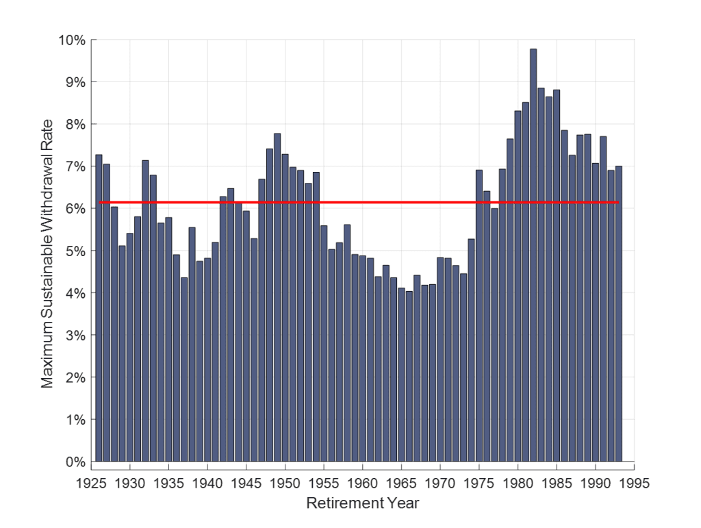 Sequence risks have real-life impacts. For someone who retired in 1966, the sustainable withdrawal rate was only 4% (due to the high inflation and stagnant stock market). Whereas, if the same person had retired in 1982, he/she could have sustainably withdrawn 10% due to the exceptionally high yield and strong stock market returns!