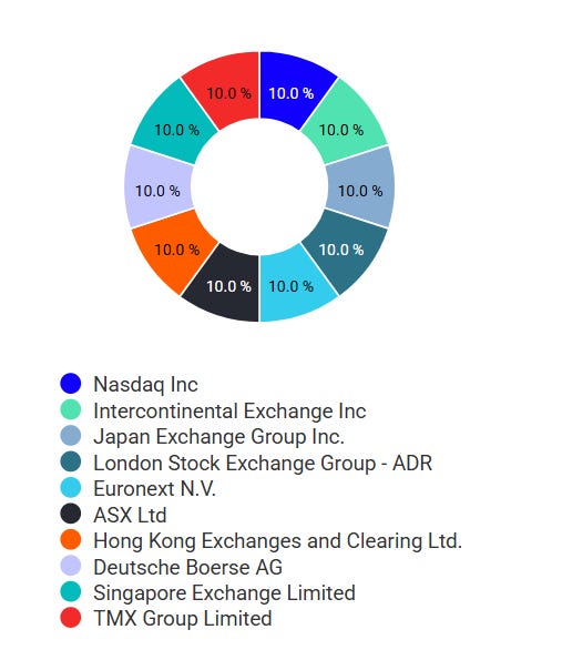 For comparison, we consider a global portfolio of equity indices, mirroring the geographic allocations used in the exchange portfolio.