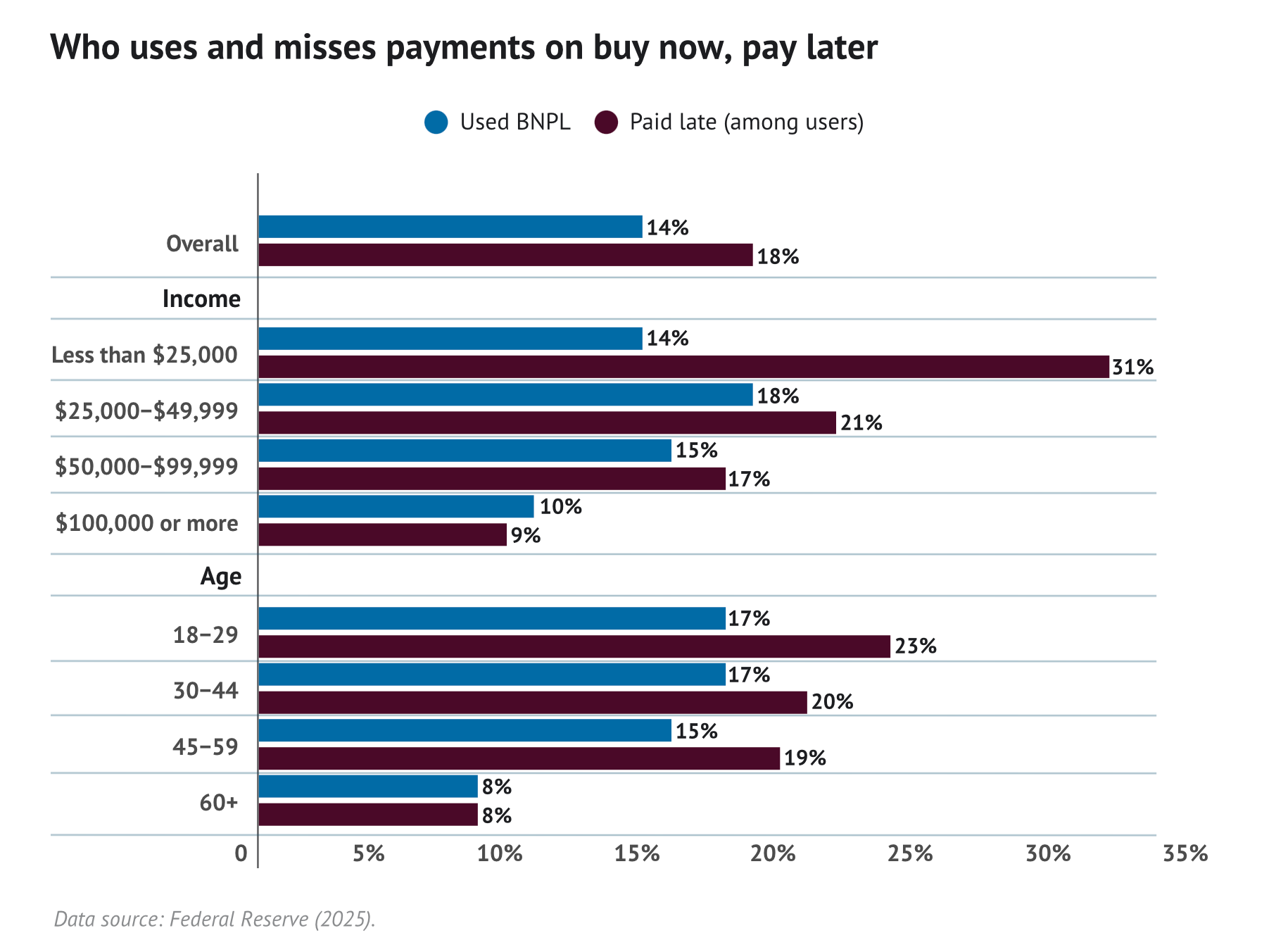 The Grocery Shift: Perhaps most alarming, 25% of borrowers now use BNPL for groceries (up from 14% last year).
