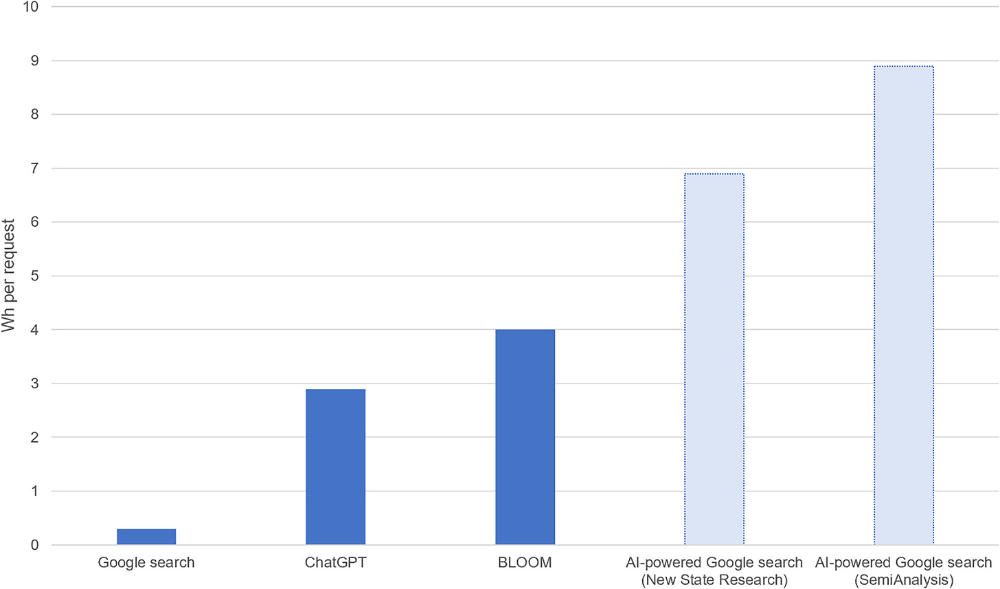 A single ChatGPT query consumes 10x -15x more energy than a traditional Google search: